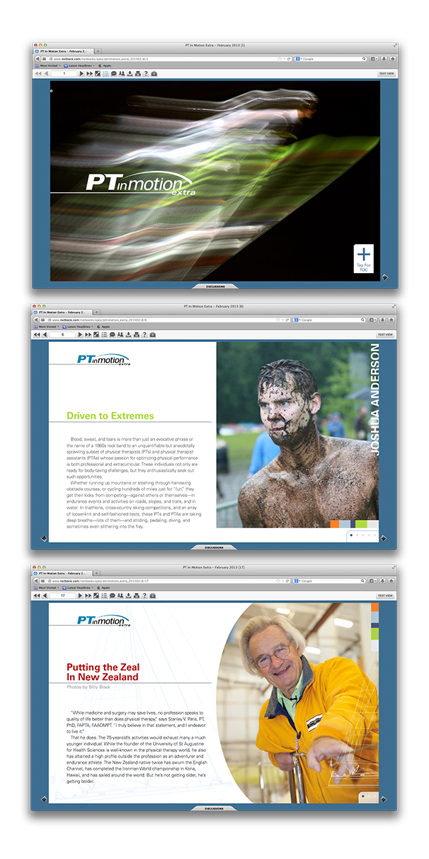 • Conceptualize and design each article and section of PTinMotion extra.